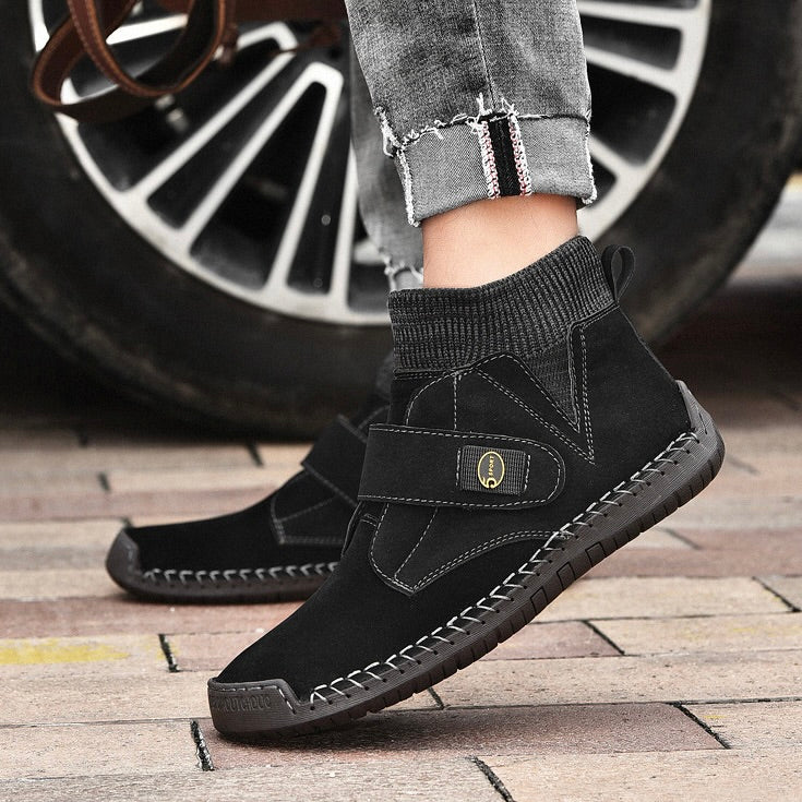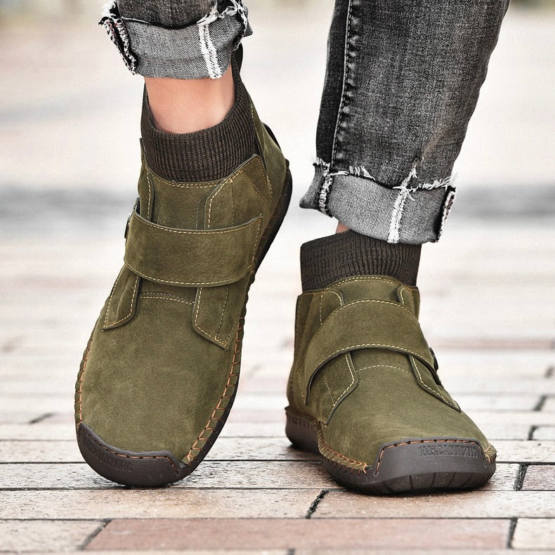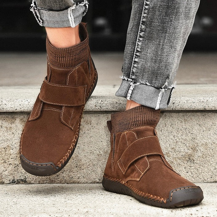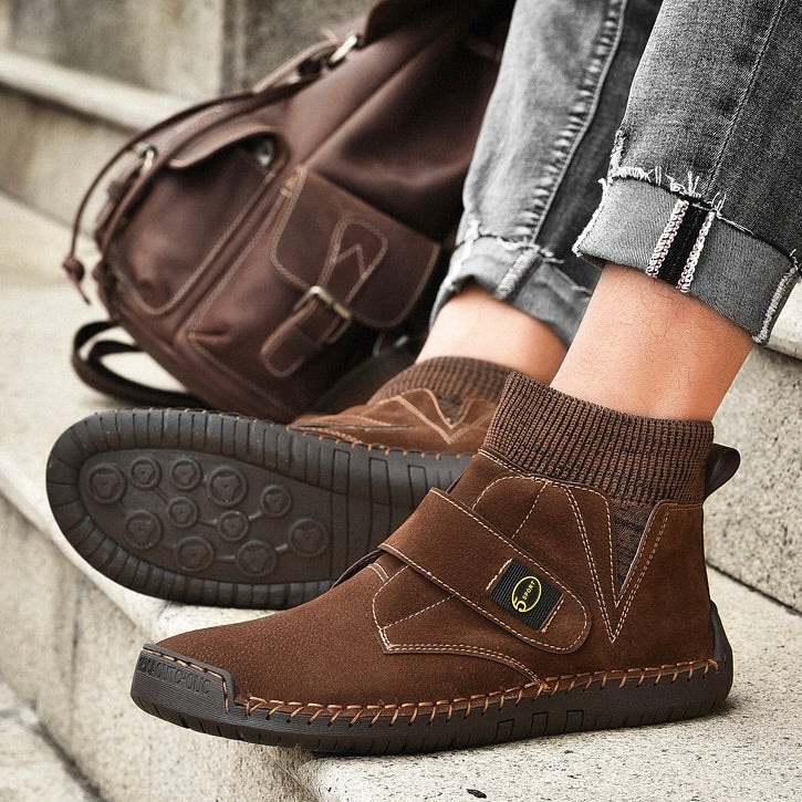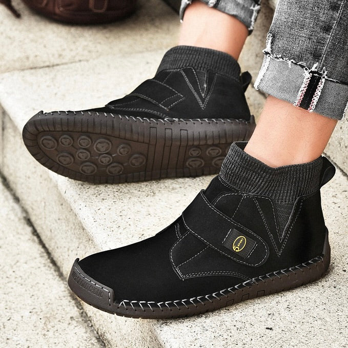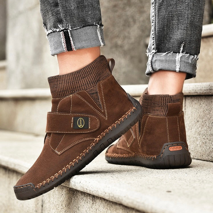 Pánské boty Patrick jsou vyrobené z měkkého broušeného semiše a zdobené ručním prošíváním, které dodává osobitý vzhled. Pletený límec kolem kotníku zajišťuje pohodlné nošení bez otlaků, zatímco vnitřní zateplená podšívka udrží nohy v teple i během chladných dnů. Lehké provedení, polstrovaná stélka a odolná gumová podrážka dělají z těchto bot spolehlivý kousek pro každodenní zimní nošení.