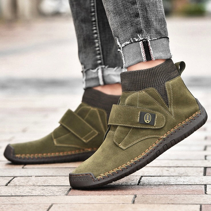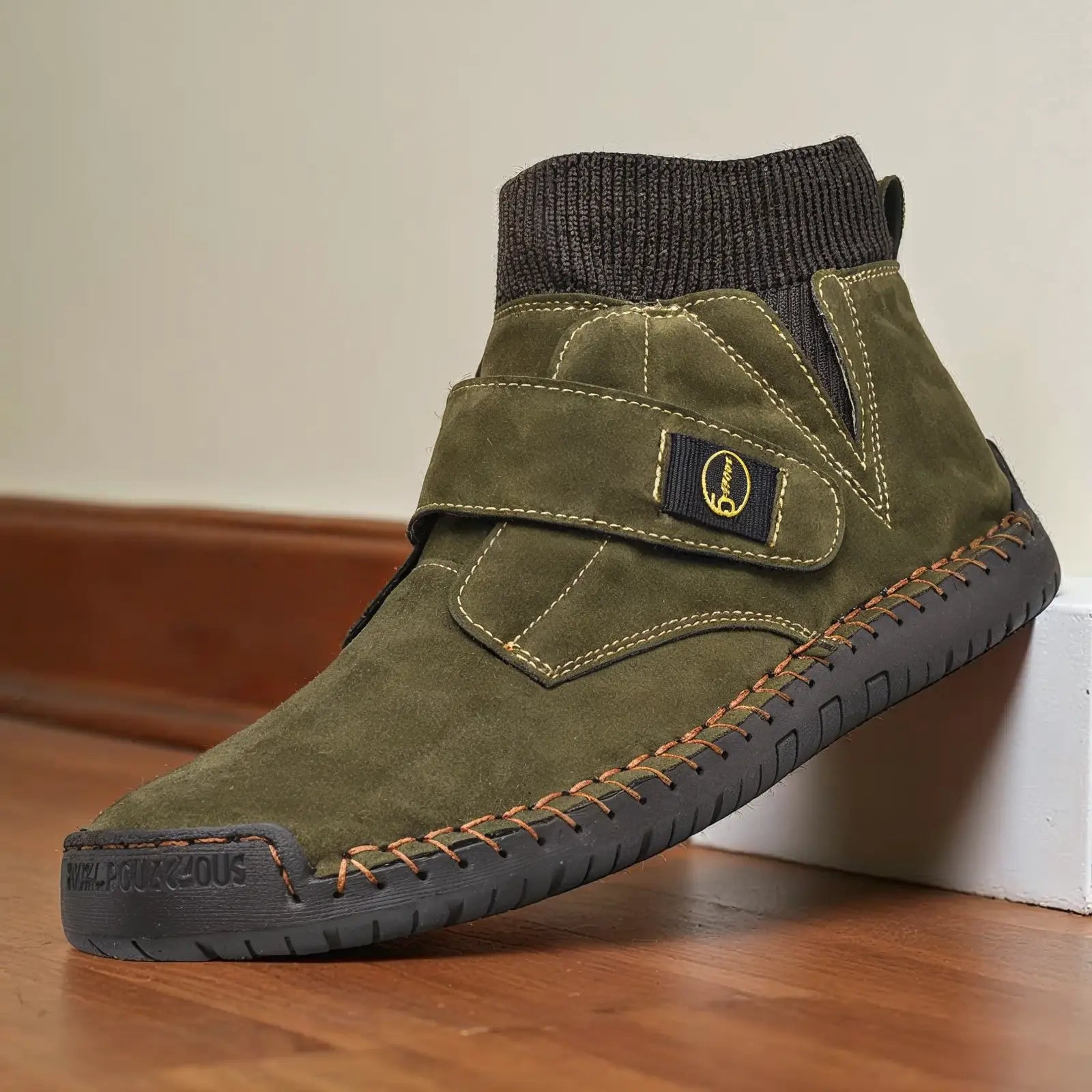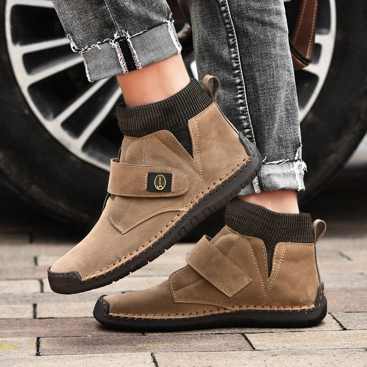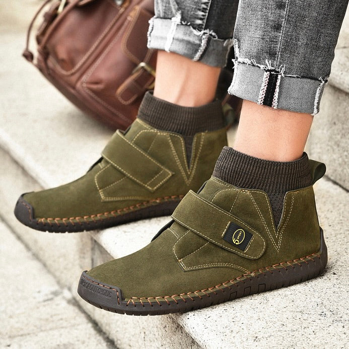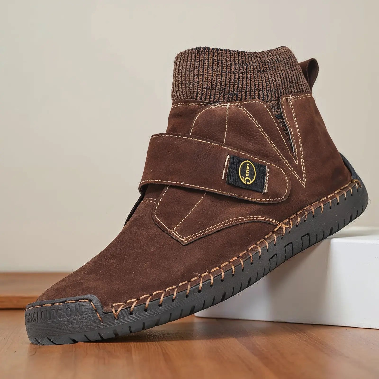Pánské boty Patrick jsou vyrobené z měkkého broušeného semiše a zdobené ručním prošíváním, které dodává osobitý vzhled. Pletený límec kolem kotníku zajišťuje pohodlné nošení bez otlaků, zatímco vnitřní zateplená podšívka udrží nohy v teple i během chladných dnů. Lehké provedení, polstrovaná stélka a odolná gumová podrážka dělají z těchto bot spolehlivý kousek pro každodenní zimní nošení.