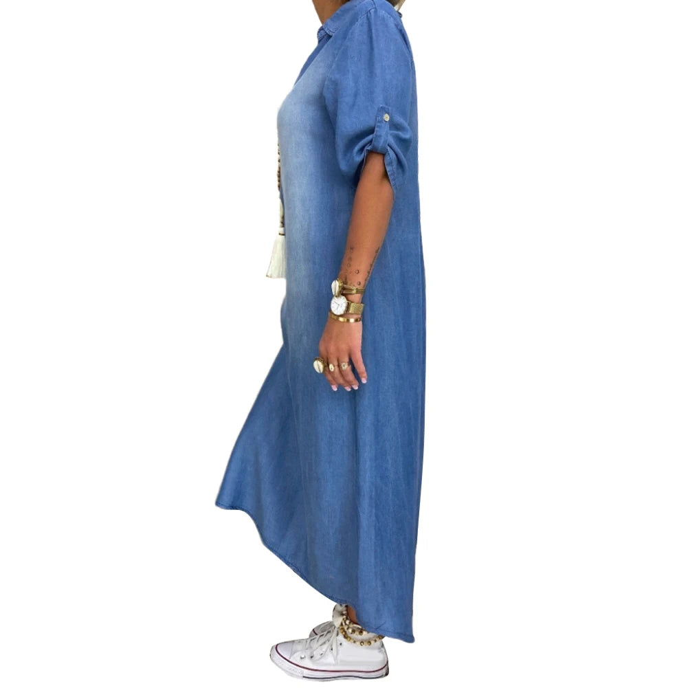 Miriam oslavuje krásu jednoduchosti v podobě dlouhých košilových šatů, které nikdy nevyjdou z módy. Lehký a splývavý materiál v kombinaci s volným střihem lichotí každé postavě, zatímco postranní rozparky a ohrnuté rukávy dodávají šatům ležérní šmrnc. Ideální k teniskám i sandálům pro svěží a moderní vzhled bez námahy.
